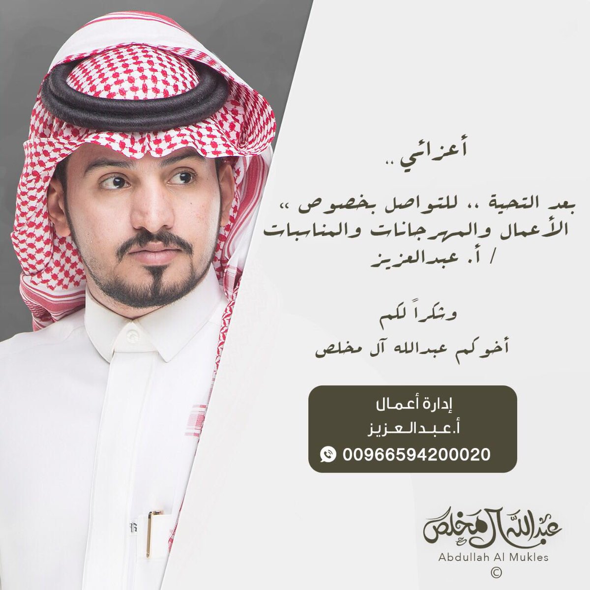 عبدالله ال مخلص On Twitter اعزائي بعد التحيه لتواصل بخصوص الاعمال المهرجانات والمناسبات أ عبدالعزيز 0594200020 وشكرا لكم اخوكم عبدالله ال مخلص Https T Co R4t7ngvtdg