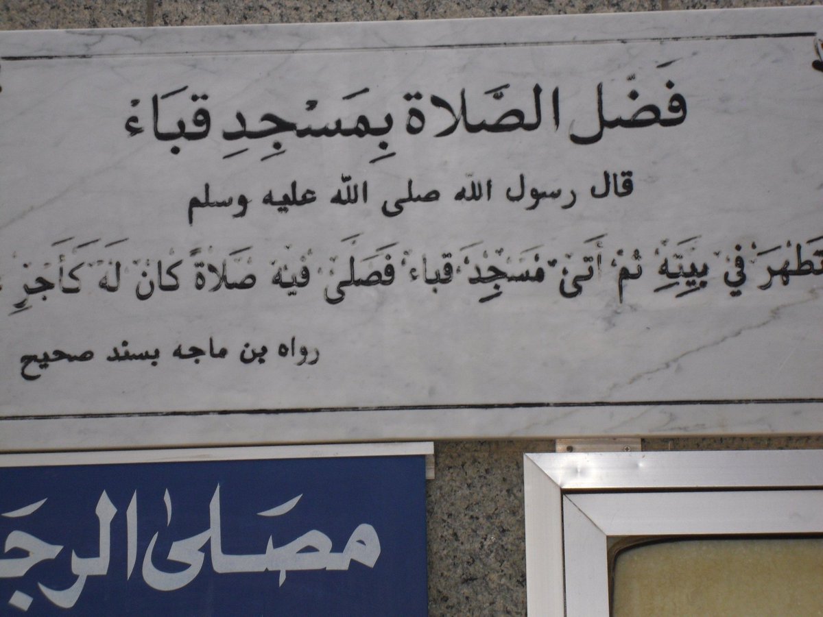 من امام مسجد قباء لوحة تبين فضل الصلاة شركة البيت العتيق للحج والعمرة Facebook